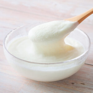 容器に盛りつける際にヨーグルトといっしょにホエー(乳清)がでる場合がありますが、ホエーは水溶性のタンパク質、ビタミン、ミネラルなどの栄養素を豊富に含む、低脂肪で高タンパクな乳成分由来の水分です。